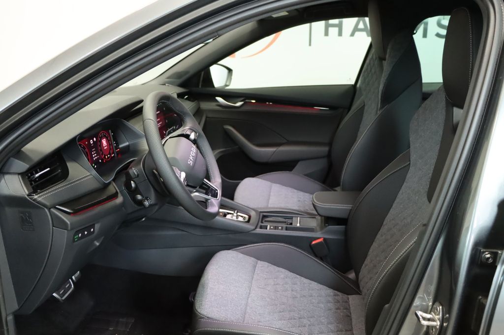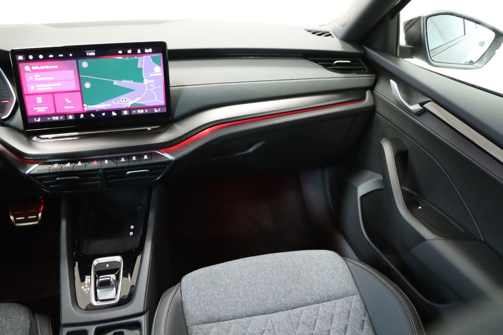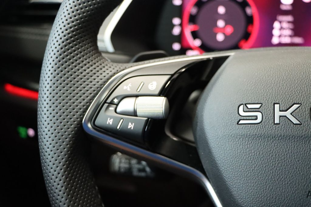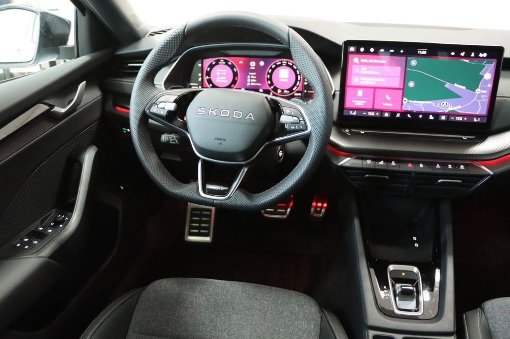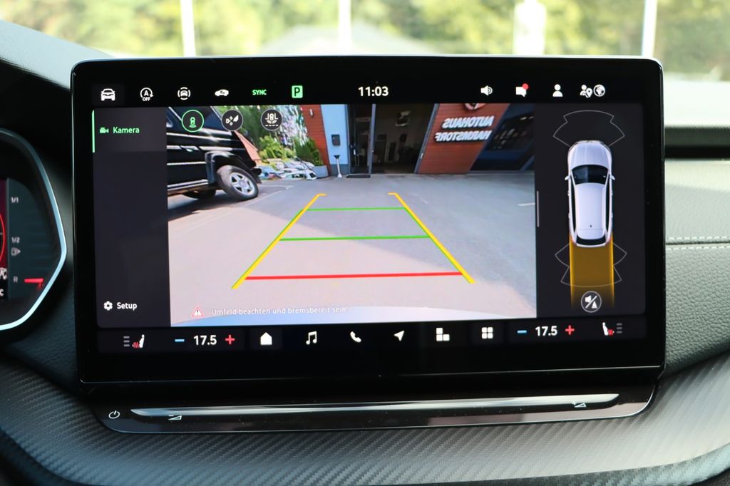 2 USB-Anschlüsse vorn und 2 USB-Ladeanschlüsse im Fond und USB-Ladeanschluß am Rückspiegel, 3-Punkt-Sicherheitsgurte hinten, 8 Lautsprecher, Ablagefächer (Gepäck-/Laderaum), Ablagetasche an Vordersitzlehnen, Airbag Beifahrerseite abschaltbar, Airbag Fahrer-/Beifahrerseite, Akustikglas Türscheiben vorn, Antriebs-Schlupfregelung (ASR), Außenspiegel elektr. anklappbar, Außenspiegel elektr. verstell- und heizbar, Außenspiegel mit Abblendautomatik, links, Außenspiegel schwarz lackiert und Türgriffe außen in Wagenfarbe, Brillenfach, Dachhimmel schwarz, Dachreling schwarz, hochglänzend, Doppeltonfanfare, Edelstahlpedale Sportdesign, Einparkhilfe vorn und hinten, Einstiegsleisten (Aluminium-Design), Elektron. Querdifferentialsperre (XDS), Fahrassistenz-Paket: Travel Assist, Fahrassistenz-System: Abbiegebremsfunktion und Ausweichunterstützung, Fahrassistenz-System: Auffahrwarnsystem mit City-Notbremsfunktion (Frontradar-Assistent), Fahrassistenz-System: Berganfahr-Assistent (Hill-Holder), Fahrassistenz-System: Fahrprofilauswahl, Fahrassistenz-System: Fernlichtassistent, Fahrassistenz-System: Multikollisionsbremse (Multi Collision Brake), Fahrassistenz-System: Müdigkeitserkennung, Fahrassistenz-System: Verkehrszeichenerkennung, Fensterheber elektrisch vorn + hinten, Fensterzierleisten schwarz, hochglänzend, Freisprechanlage Telefon mit Bluetooth, Frontkamera, Fußraumbeleuchtung vorn und hinten, Gepäckraumabdeckung / Rollo, Geschwindigkeits-Begrenzeranlage, Heckleuchten LED (Kristallglas-Optik), Heckscheibenwischer, Induktionsladeschale für Smartphone, Infotainment-System mit 10" Display, Innenausstattung: Dekoreinlagen Dark Carbon, Innenausstattung: Luftausströmer Schwarz, Innenspiegel mit Abblendautomatik, Isofix-Aufnahmen für Kindersitz an Beifahrersitz und Rücksitze außen (inkl. Top Tether), Karosserie: 5-türig, Kindersicherung, manuell, Klimaanlage Climatronic 2-Zonen, Knieairbag Fahrerseite, Kofferraumbeleuchtung, Kombiinstrument digital (virtual cockpit plus), Kopf-Airbag-System, Kühlergrill schwarz, Lehnenentriegelung der Rücksitzlehne im Kofferraum, Lenkrad (Sport/Leder - 3-Speichen, unten abgeflacht) mit Multifunktion und Schaltfunktion, Lenksäule (Lenkrad) verstellbar (vertikal / axial), Leseleuchten vorn und hinten, Leuchtweitenregelung, LM-Felgen, Modellpflege, Motor 1,5 Ltr. - 110 kW 16V TSI mHEV Mild-Hybrid (DXDB), Motor-Schleppmoment-Regulator (MSR), Parkbremse elektronisch, Progressivlenkung, Radioempfang digital (DAB+), Reifen-Reparaturkit, Reifendruck-Kontrollsystem, Rückfahrkamera, Rücksitz geteilt / klappbar (60:40) Mittelarmlehne und Durchladefunktion, Rücksitzlehne geteilt/klappbar, Schadstoffarm nach Abgasnorm Euro 6e, Scheinwerfer LED, Seitenairbag vorn mitte (Center-Airbag), Servolenkung elektronisch (Servotronic), Sitzbezug / Polsterung: Stoff/Kunstleder Sportline schwarz, Sitzheizung vorn, SKODA Care Connect & Infotainment Online, Sonnenblenden mit Spiegel (LED-Beleuchtung), Sport-Fahrwerk, Sportsitze, Steckdose (12V-Anschluß) im Koffer-/Laderaum, Stoßfängerblende und Heckdiffusor schwarz glänzend, Türen mit Warnleuchte, Türgriffe innen verchromt, Verzurrösen Koffer-/Laderaum, Vorbereitung für Alkohol-Wegfahrsperre (Alcolock), Warnanlage für Sicherheitsgurte hinten, Warnanlage für Sicherheitsgurte, Fahrer-/Beifahrerseite, Wireless SmartLink, Zentralverriegelung / Startanlage Kessy-Go