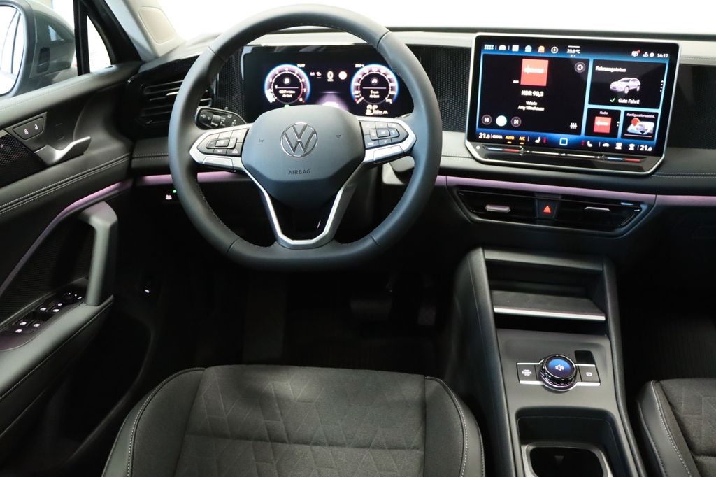 3-Punkt-Sicherheitsgurt hinten mitte, Airbag Fahrer-/Beifahrerseite, Beifahrerairbag abschaltbar, App-Connect Wireless (Apple CarPlay, Android Auto), Audiosystem: Vorbereitung für spätere Freischaltung Navigationsfunktion, Ausstattung Life, Automatische Fahrlichtschaltung mit Leaving Home / Coming-Home-Lichtfunktion, Tagfahrlicht LED, Außenspiegel asphärisch, links und konvex, rechts, Außenspiegel elektr. verstell-, heiz- und anklappbar, mit Memory, Außenspiegel mit Umfeldleuchte und Projektionsfunktion, Außenspiegel und Türgriffe außen in Wagenfarbe, Bluetooth-Schnittstelle für Mobiltelefon, Bordwerkzeug, Dachhimmel Stoff Ceramique (hellgrau), Digital Cockpit PRO (Instrumentenanzeige digital), Elektron. Stabilitäts-Programm (ESP) mit Bremskraftverstärker elektro-mechanisch, Fahrassistenz-System: Abbiegebremsfunktion und Ausweichunterstützung, Fahrassistenz-System: Ablenkungs- und Müdigkeitserkennung, Fahrassistenz-System: Autom. Distanzregelung (ACC inkl. Stop&Go-Funktion), Fahrassistenz-System: Berganfahr-Assistent, Fahrassistenz-System: Fahrprofilauswahl, Fahrassistenz-System: Fernlichtregulierung (Light Assist), Fahrassistenz-System: Kreuzungs-Assistent, Fahrassistenz-System: Notbremsassistent Front assist mit Fußgänger- und Fahrraderkennung, Fahrassistenz-System: Spurhalteassistent (Lane Assist), Fahrassistenz-System: Spurwechselassistent (Side Assist) mit Auspark-Assistent und Ausstiegswarnung, Fahrassistenz-System: Verkehrszeichenerkennung, Fahrerlebnisschalter inkl. Innenraumerlebnis Atmospheres, Fußgänger-Schutzmaßnahmen erweitert, Fußmatten Textil, Gepäckraumboden höhenverstellbar, Geschwindigkeitsbegrenzer mit vorausschauender Geschw.-Regelung, Infotainment-System mit Touchscreen-Farbdisplay 12,9 Zoll, Innenausstattung: Dekor-Set Life, Innenspiegel mit Abblendautomatik, Isofix-Aufnahmen für Kindersitz an Beifahrersitz und Rücksitze außen (inkl. i-Size-Kindersitze), Karosserie: 5-türig, Keyless-Start mit Safesicherung, Klimaanlage Air Care Climatronic 3-Zonen inkl. Fondbedienung und Aktiv-Kombi-Filter, Kopfstützen hinten (3-fach), Lautsprecher (8), Lendenwirbelstützen vorn, pneumatisch verstellbar, Mild-Hybrid 110 kW (Motor 1,5 Ltr. - 110 kW eTSI), Mild-Hybrid-Technologie, Mittelkonsole Standard, Mobile Online Dienste Vorbereitung We Connect und We Connect Plus, Multimedia-Schnittstelle 2 x USB (Typ C, 45 W) vorn, Nebelschlussleuchte einseitig und Rückfahrleuchten beidseitig, Nichtraucher-Paket, Notrufsystem, Otto-Partikelfilter (OPF), Parkbremse elektrisch mit Auto-Hold-Funktion, Radioempfang digital (DAB+), Radstand Standard, Reifen-Reparaturkit (Tire Mobility Set), Reifenkontroll-Anzeige, Rückfahrkamera (Rear View), Rücksitz geteilt / klappbar, verschiebbar, Mittelarmlehne und Durchladefunktion, Rücksitz geteilt / klappbar, verschiebbar, Neigungsverstellung, Durchladefunktion und Mittelarmlehne, Schadstoffarm nach Abgasnorm Euro 6e, Seitenairbag und Kopfairbag vorn und hinten, Center-Airbag vorn, Servolenkung elektro-mechanisch und geschwindigkeitsabhängig, Sicherheitsgurte hinten außen mit Gurtstraffer, Sitzbezug / Polsterung: Stoff Life, Sitze vorn höhenverstellbar, Sitze: Komfortsitze vorn, Sitzlehne vorn rechts umklappbar, Sonnenblenden mit Spiegel (beleuchtet), Start/Stop-Anlage mit Rekuperation, Steckdose 12V im Koffer-/Laderaum, Stoßfänger Life, Türgriffschalen außen beleuchtet, Verbandkasten, Warndreieck und Warnweste(n), Warnanlage für Sicherheitsgurte vorn und hinten