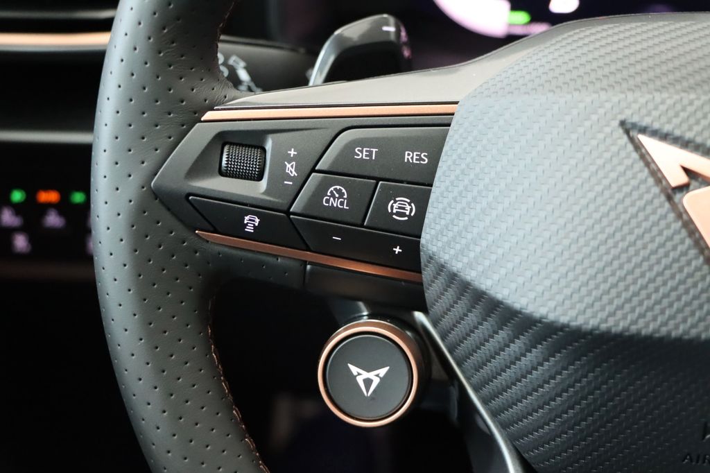 6 Lautsprecher, Abdeckkappen Außenspiegel Dark Aluminium, Airbag Beifahrerseite abschaltbar, Airbag Fahrer-/Beifahrerseite, Außenspiegel elektr. verstell-, heiz- und anklappbar mit Spiegelabsenkung und Welcome Light, Connectivity-Box, Dachhimmel schwarz, Dachreling schwarz, hochglänzend, Differentialsperre (Vorderachse), Einparkhilfe vorn und hinten, Einstiegsleisten vorn beleuchtet, Elektron. Differentialsperre (XDS), Fahrassistenz-System: Fahrprofilauswahl (CUPRA Drive Profile), Fensterheber elektrisch vorn + hinten mit Komfortschaltung, Fensterzierleisten schwarz hochglänzend, Full Link (MirrorLink, Apple CarPlay und Android Auto), Gepäck-/Laderaumboden doppelt, Gepäckraum-Abtrennung (Netz), Gepäckraumabdeckung / Rollo, Gepäckraumbeleuchtung (LED), Handschuhfach mit LED-Beleuchtung, Innenausstattung: Interieurleisten Copper, Isofix-Aufnahmen für Kindersitz an Beifahrersitz und Rücksitz (inkl. i-Size-Kindersitze), Karosserie: 5-türig, Klimaanlage Climatronic 3-Zonen, Kombiinstrument digital (virtual cockpit), Kopf-Airbag-System, Kopfstützen hinten (3-fach), Lendenwirbelstütze Sitz vorn links, verstellbar, Lendenwirbelstütze Sitz vorn rechts, verstellbar, Leseleuchten hinten LED, Leseleuchten vorn LED, Licht- und Sicht-Paket, Media-System Plus, Mild-Hybrid 110 kW (Motor 1,5 Ltr. - 110 kW eTSI), Mobile Online Dienste Cupra Connect, Modellpflege, Notrufsystem, Parkbremse elektrisch mit Auto-Hold-Funktion, Radioempfang digital (DAB+), Reifen-Reparaturset, Rücksitzlehne geteilt/klappbar mit Mittelarmlehne und Durchladeeinrichtung, Rücksitzlehnen umklappbar mit Fernentriegelung im Kofferraum, Schadstoffarm nach Abgasnorm Euro 6e, Seitenairbag, Seitenairbag vorn mitte (Central Airbag), Seitenscheiben ab 2.Sitzreihe und Heckscheibe dunkel getönt (Privacy Glass), Sicherheitsgurte vorn höhenverstellbar, Sitz vorn links höhenverstellbar, Sitz vorn rechts höhenverstellbar, Sonnenblende links mit Spiegel (beleuchtet), Sonnenblende rechts mit Spiegel (beleuchtet), Steckdose 230V im Gepäckraum, USB-Ladeanschlüsse (2-fach, Typ C) für 2.Sitzreihe, USB-Schnittstelle vorn (2-fach, Typ C), Verzurrösen Koffer-/Laderaum, Voll-LED-Paket, Warnanlage für Sicherheitsgurt-System, Wärmeschutzverglasung