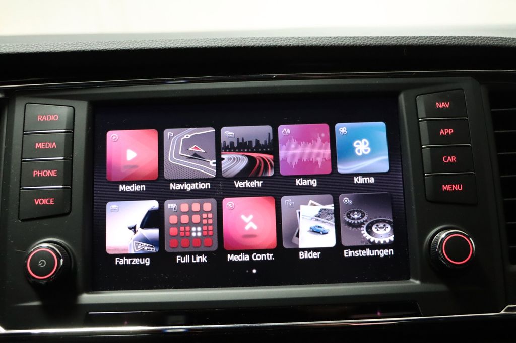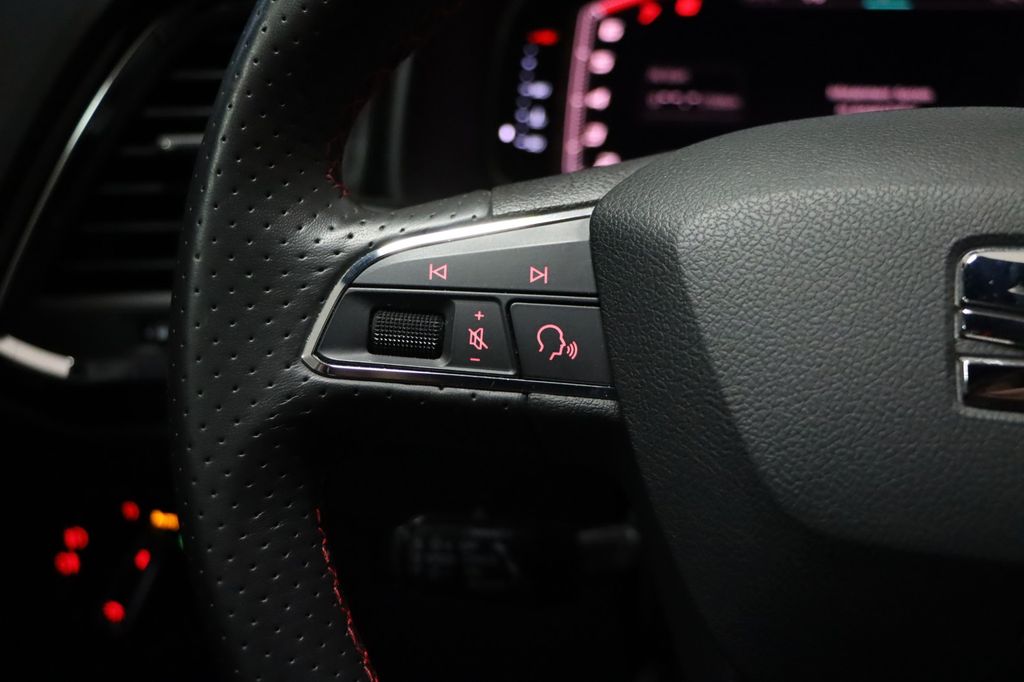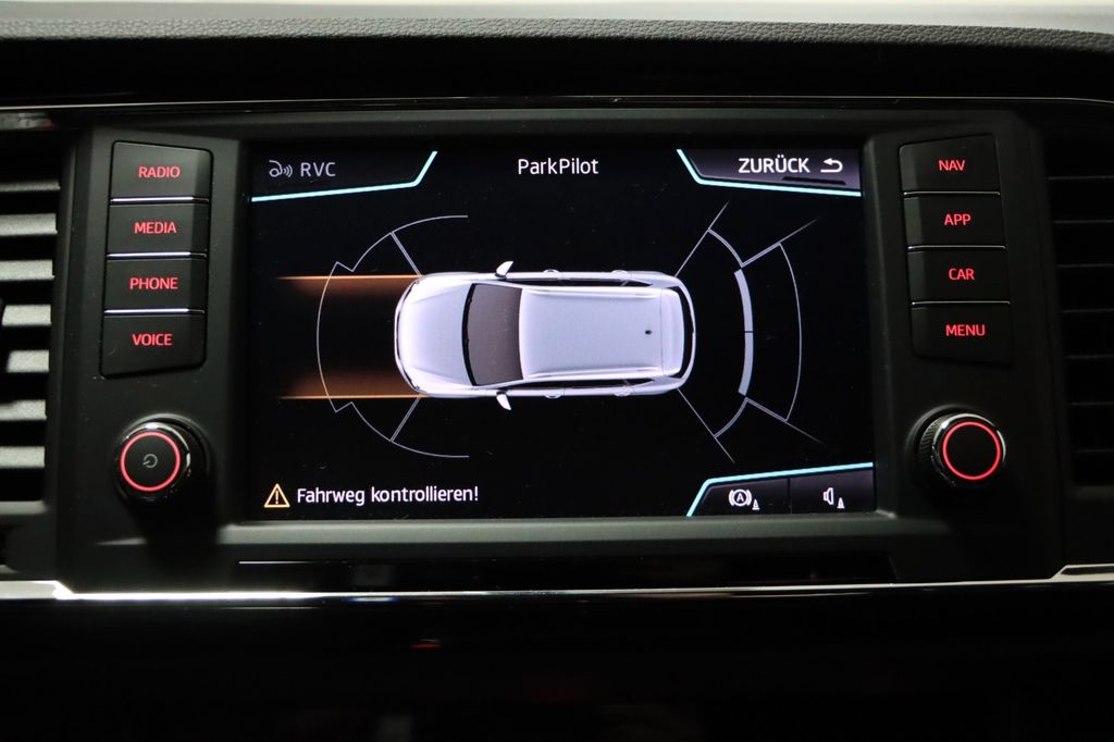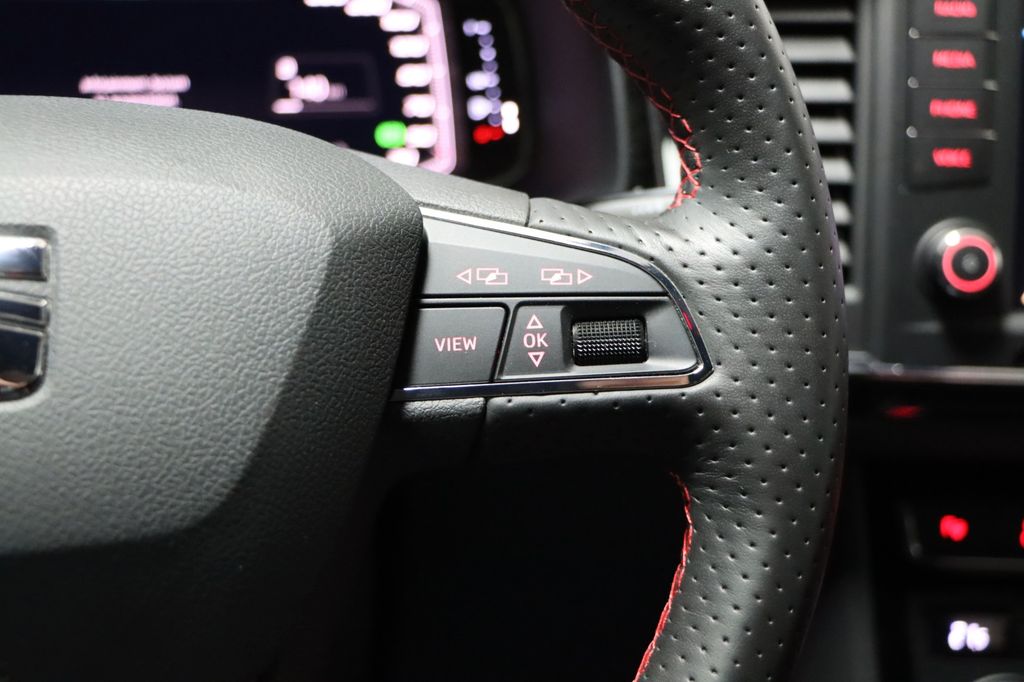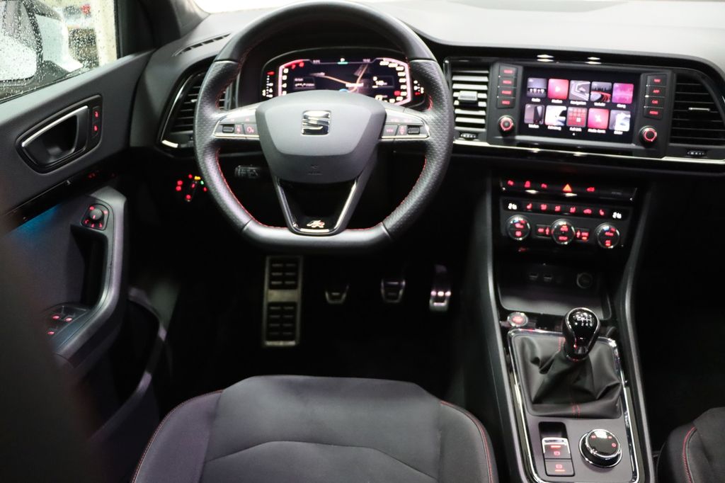3. Bremsleuchte, Airbag Beifahrerseite abschaltbar, Airbag Fahrer-/Beifahrerseite, Alcantara-Paket, Antriebs-Schlupfregelung (ASR), AUX-IN-Anschluss und 2 x USB-Anschluss, Außenspiegel elektr. verstell-, heiz- und anklappbar mit Spiegelabsenkung und Welcome Light, Außenspiegel lackiert, Außenspiegel und Türgriffe außen in Wagenfarbe, Blinkleuchte in Außenspiegel integriert, Bordcomputer, Bremsassistent, Chromleisten an Seitenfenstern, Dachhimmel schwarz, Dachreling, Doppeltonhorn, Einparkhilfe hinten, Einstiegsleisten beleuchtet, Fahrassistenz-System: Berganfahr-Assistent (Hill-Holder), Fahrassistenz-System: Fahrprofilauswahl (SEAT Drive Profile), Fahrassistenz-System: Müdigkeitserkennung, Fahrassistenz-System: Umfeldbeobachtungssystem (Front assist) mit City-Notbremsfunktion, Fensterheber elektrisch vorn + hinten, Fußraumbeleuchtung vorn, Gepäckraumabdeckung / Rollo, Handschuhfach beleuchtet, Heckleuchten LED, Innenausstattung: Chrom-Applikationen, Innenraumlicht-Paket LED, Isofix-Aufnahmen für Kindersitz, Karosserie: 5-türig, Klimaanlage Climatronic 2-Zonen, Knieairbag Fahrerseite, Komfortsitze, Kopf-Airbag-System, Kopfstützen hinten (3-fach), Kopfstützen vorn, Lendenwirbelstütze Sitz vorn links, verstellbar, Lendenwirbelstütze Sitz vorn rechts, verstellbar, Lendenwirbelstütze verstellbar, Lenkrad (Sport/Leder) mit Multifunktion, LM-Felgen, Mittelarmlehne hinten, Mittelkonsole vorn mit Mittelarmlehne, Becherhalter, Ablagebox und Luftausströmer hinten, Motor 1,5 Ltr. - 110 kW 16V TSI ACT, Otto-Partikelfilter (OPF), Parkbremse elektrisch, Radstand 2638 mm, Reifenkontroll-Anzeige, Rückfahrkamera, Rücksitzlehne klappbar, Rücksitzlehnen umklappbar mit Fernentriegelung im Kofferraum, Schadstoffarm nach Abgasnorm Euro 6d-TEMP, Schalt-/Wählhebelgriff Leder, Scheinwerfer LED, Seitenairbag, Seitenscheiben hinten und Heckscheibe abgedunkelt, Sitz vorn links höhenverstellbar, Sitz vorn rechts höhenverstellbar, Sitz-Paket Dinamica, Start/Stop-Anlage, Stau-/Ablagefach unter Sitz vorn links, Steckdose (12V-Anschluß) vorn, Stoßfänger FR-Design, Verglasung getönt, Verzurrösen Koffer-/Laderaum, Wärmeschutzverglasung