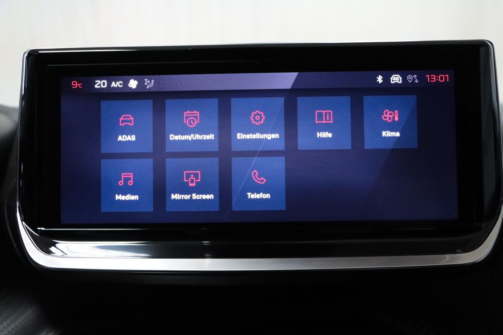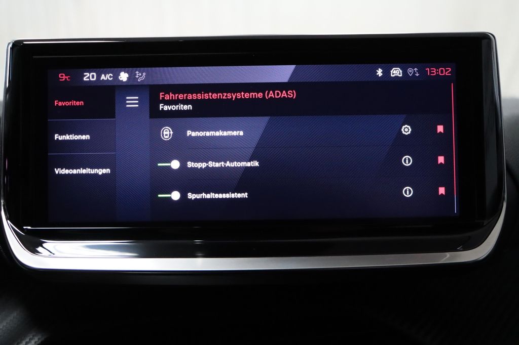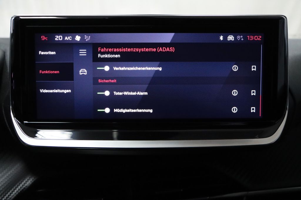 Airbag Beifahrerseite abschaltbar, Airbag Fahrer-/Beifahrerseite, Antischlupfregelung (ASR), Autom. Begleitfunktion der Beleuchtung (Coming Home, Leaving Home), Außenspiegel elektr. verstell- und heizbar, beide, Außenspiegel mit Abdeckkappen schwarz, Blinkleuchte in Außenspiegel integriert, Bordcomputer, Einparkhilfe hinten, Einparkhilfe vorn und hinten, Einschaltautomatik für Fahrlicht, Elektr. Bremskraftverteilung, Elektrik-Paket, Fahrassistenz-System: Aktiver Notbrems-Assistent (Active Safety Brake), Fahrassistenz-System: aktiver Spurassistent (Lenkunterstützung), Fahrassistenz-System: Auffahrwarnsystem mit Bremsfunktion, Fahrassistenz-System: Berganfahrhilfe, Fahrassistenz-System: Kollisionswarnsystem, Fahrassistenz-System: Müdigkeitserkennungs-Sensor, Fahrassistenz-System: Verkehrszeichenerkennung, Fahrmodusschalter, Fensterheber elektrisch vorn links, sequentiell, Frontscheibe geräuschdämmend, Fußraumleuchte vorn LED, Getränkehalter vorn, Heckleuchten LED, Heckscheibe heizbar, Heckschürze, schwarz glänzend, Heckspoiler, Heckspoiler schwarz glänzend, Infotainment-System i-Connect, Innenraumfilter: Staub- und Pollenfilter, Isofix-Aufnahmen für Kindersitz, Karosserie: 5-türig, Kartentasche an Vordersitze, Kindersicherung elektrisch, Kombiinstrument mit Matrix-Display, Komfort-Paket, Kopf-Airbag-System hinten, Kühlergrill verchromt, Lenkrad mit Multifunktion, LM-Felgen, Mobile Online Dienste Mirror Screen, Modellpflege, Motor 1,2 Ltr. - 74 kW PureTech, Multifunktionsanzeige mit Farbdisplay (DGT10CHD), Otto-Partikelfilter (GPF), Parkbremse elektrisch, Peugeot Connect-Box / SOS-Taste (Notruf für Lokalisierung Fahrzeug), Pyrotechnischer Gurtstraffer, Radioempfang digital (DAB+), Reifen-Reparaturkit, Reifendruck-Kontrollsystem, Rücksitzbank klappbar 1/3-2/3, Rücksitzlehne geteilt/klappbar, Schadstoffarm nach Abgasnorm Euro 6e, Schaltpunktanzeige, Scheinwerfer Eco-LED, Seitenairbag vorn, Seitenscheiben hinten und Heckscheibe dunkel getönt, Sitz vorn links höhenverstellbar, Sitzbezug / Polsterung: Stoff/Kunstleder, Start/Stop-Anlage, Steckdose (12V-Anschluß) in Mittelkonsole, Türgriffe außen Wagenfarbe, Verzurrösen Laderaum, Warnanlage für Sicherheitsgurte