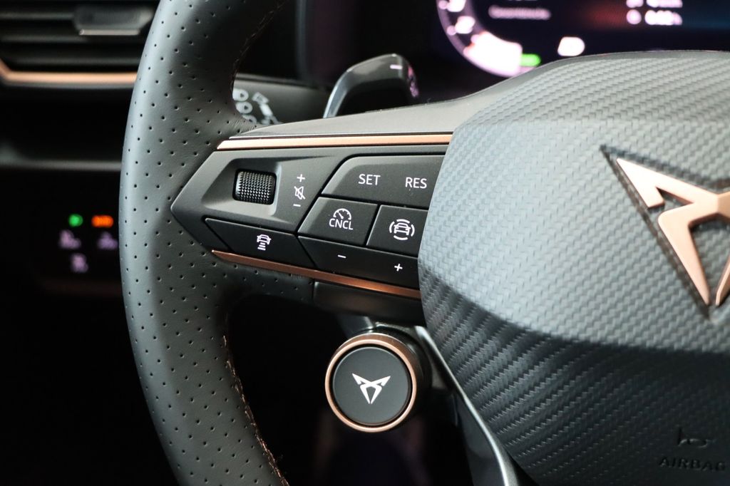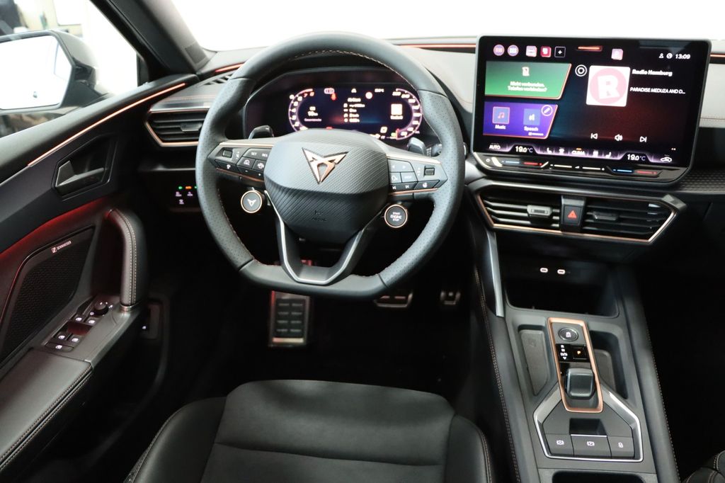 6 Lautsprecher, Abdeckkappen Außenspiegel Dark Aluminium, Airbag Beifahrerseite abschaltbar, Airbag Fahrer-/Beifahrerseite, Außenspiegel elektr. verstell-, heiz- und anklappbar mit Spiegelabsenkung und Welcome Light, Connectivity-Box, Dachhimmel schwarz, Dachreling schwarz, hochglänzend, Differentialsperre (Vorderachse), Einparkhilfe vorn und hinten, Einstiegsleisten vorn beleuchtet, Elektron. Differentialsperre (XDS), Fahrassistenz-System: Fahrprofilauswahl (CUPRA Drive Profile), Fensterheber elektrisch vorn + hinten mit Komfortschaltung, Fensterzierleisten schwarz hochglänzend, Full Link (MirrorLink, Apple CarPlay und Android Auto), Gepäck-/Laderaumboden doppelt, Gepäckraum-Abtrennung (Netz), Gepäckraumabdeckung / Rollo, Gepäckraumbeleuchtung (LED), Handschuhfach mit LED-Beleuchtung, Innenausstattung: Interieurleisten Copper, Isofix-Aufnahmen für Kindersitz an Beifahrersitz und Rücksitz (inkl. i-Size-Kindersitze), Karosserie: 5-türig, Klimaanlage Climatronic 3-Zonen, Kombiinstrument digital (virtual cockpit), Kopf-Airbag-System, Kopfstützen hinten (3-fach), Lendenwirbelstütze Sitz vorn links, verstellbar, Lendenwirbelstütze Sitz vorn rechts, verstellbar, Leseleuchten hinten LED, Leseleuchten vorn LED, Licht- und Sicht-Paket, Media-System Plus, Mild-Hybrid 110 kW (Motor 1,5 Ltr. - 110 kW eTSI), Mobile Online Dienste Cupra Connect, Modellpflege, Notrufsystem, Parkbremse elektrisch mit Auto-Hold-Funktion, Radioempfang digital (DAB+), Reifen-Reparaturset, Rücksitzlehne geteilt/klappbar mit Mittelarmlehne und Durchladeeinrichtung, Rücksitzlehnen umklappbar mit Fernentriegelung im Kofferraum, Schadstoffarm nach Abgasnorm Euro 6e, Seitenairbag, Seitenairbag vorn mitte (Central Airbag), Seitenscheiben ab 2.Sitzreihe und Heckscheibe dunkel getönt (Privacy Glass), Sicherheitsgurte vorn höhenverstellbar, Sitz vorn links höhenverstellbar, Sitz vorn rechts höhenverstellbar, Sonnenblende links mit Spiegel (beleuchtet), Sonnenblende rechts mit Spiegel (beleuchtet), Steckdose 230V im Gepäckraum, USB-Ladeanschlüsse (2-fach, Typ C) für 2.Sitzreihe, USB-Schnittstelle vorn (2-fach, Typ C), Verzurrösen Koffer-/Laderaum, Voll-LED-Paket, Warnanlage für Sicherheitsgurt-System, Wärmeschutzverglasung