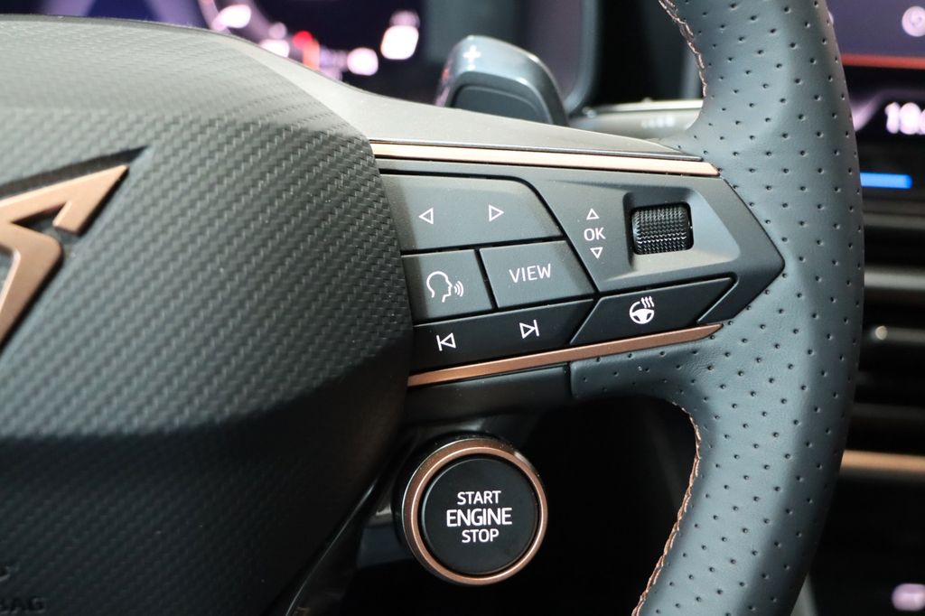 6 Lautsprecher, Abdeckkappen Außenspiegel Dark Aluminium, Airbag Beifahrerseite abschaltbar, Airbag Fahrer-/Beifahrerseite, Außenspiegel elektr. verstell-, heiz- und anklappbar mit Spiegelabsenkung und Welcome Light, Connectivity-Box, Dachhimmel schwarz, Dachreling schwarz, hochglänzend, Differentialsperre (Vorderachse), Einparkhilfe vorn und hinten, Einstiegsleisten vorn beleuchtet, Elektron. Differentialsperre (XDS), Fahrassistenz-System: Fahrprofilauswahl (CUPRA Drive Profile), Fensterheber elektrisch vorn + hinten mit Komfortschaltung, Fensterzierleisten schwarz hochglänzend, Full Link (MirrorLink, Apple CarPlay und Android Auto), Gepäck-/Laderaumboden doppelt, Gepäckraum-Abtrennung (Netz), Gepäckraumabdeckung / Rollo, Gepäckraumbeleuchtung (LED), Handschuhfach mit LED-Beleuchtung, Innenausstattung: Interieurleisten Copper, Isofix-Aufnahmen für Kindersitz an Beifahrersitz und Rücksitz (inkl. i-Size-Kindersitze), Karosserie: 5-türig, Klimaanlage Climatronic 3-Zonen, Kombiinstrument digital (virtual cockpit), Kopf-Airbag-System, Kopfstützen hinten (3-fach), Lendenwirbelstütze Sitz vorn links, verstellbar, Lendenwirbelstütze Sitz vorn rechts, verstellbar, Leseleuchten hinten LED, Leseleuchten vorn LED, Licht- und Sicht-Paket, LM-Felgen, Media-System Plus, Mild-Hybrid 110 kW (Motor 1,5 Ltr. - 110 kW eTSI), Mobile Online Dienste Cupra Connect, Modellpflege, Notrufsystem, Parkbremse elektrisch mit Auto-Hold-Funktion, Radioempfang digital (DAB+), Reifen-Reparaturset, Rücksitzlehne geteilt/klappbar mit Mittelarmlehne und Durchladeeinrichtung, Rücksitzlehnen umklappbar mit Fernentriegelung im Kofferraum, Schadstoffarm nach Abgasnorm Euro 6e, Seitenairbag, Seitenairbag vorn mitte (Central Airbag), Seitenscheiben ab 2.Sitzreihe und Heckscheibe dunkel getönt (Privacy Glass), Sicherheitsgurte vorn höhenverstellbar, Sitz vorn links höhenverstellbar, Sitz vorn rechts höhenverstellbar, Sitzbezug / Polsterung: Stoff/Kunstleder schwarz (Sharp Textil), Sonnenblende links mit Spiegel (beleuchtet), Sonnenblende rechts mit Spiegel (beleuchtet), Sportsitze vorn, Steckdose 230V im Gepäckraum, USB-Ladeanschlüsse (2-fach, Typ C) für 2.Sitzreihe, USB-Schnittstelle vorn (2-fach, Typ C), Verzurrösen Koffer-/Laderaum, Voll-LED-Paket, Warnanlage für Sicherheitsgurt-System, Wärmeschutzverglasung