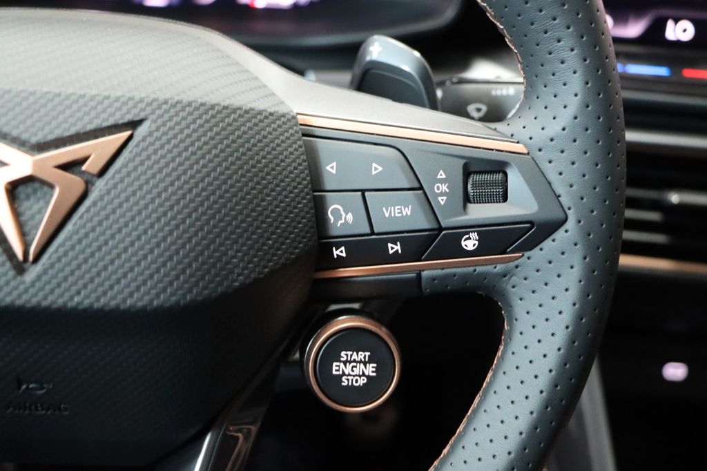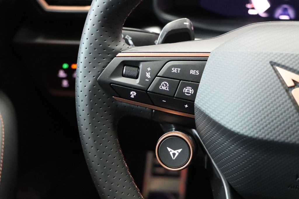 6 Lautsprecher, Abdeckkappen Außenspiegel Dark Aluminium, Airbag Beifahrerseite abschaltbar, Airbag Fahrer-/Beifahrerseite, Außenspiegel elektr. verstell-, heiz- und anklappbar mit Spiegelabsenkung und Welcome Light, Connectivity-Box, Dachhimmel schwarz, Dachreling schwarz, hochglänzend, Differentialsperre (Vorderachse), Einparkhilfe vorn und hinten, Einstiegsleisten vorn beleuchtet, Elektron. Differentialsperre (XDS), Fahrassistenz-System: Fahrprofilauswahl (CUPRA Drive Profile), Fensterheber elektrisch vorn + hinten mit Komfortschaltung, Fensterzierleisten schwarz hochglänzend, Full Link (MirrorLink, Apple CarPlay und Android Auto), Gepäck-/Laderaumboden doppelt, Gepäckraum-Abtrennung (Netz), Gepäckraumabdeckung / Rollo, Gepäckraumbeleuchtung (LED), Handschuhfach mit LED-Beleuchtung, Innenausstattung: Interieurleisten Copper, Isofix-Aufnahmen für Kindersitz an Beifahrersitz und Rücksitz (inkl. i-Size-Kindersitze), Karosserie: 5-türig, Klimaanlage Climatronic 3-Zonen, Kombiinstrument digital (virtual cockpit), Kopf-Airbag-System, Kopfstützen hinten (3-fach), Lendenwirbelstütze Sitz vorn links, verstellbar, Lendenwirbelstütze Sitz vorn rechts, verstellbar, Leseleuchten hinten LED, Leseleuchten vorn LED, Licht- und Sicht-Paket, LM-Felgen, Media-System Plus, Mild-Hybrid 110 kW (Motor 1,5 Ltr. - 110 kW eTSI), Mobile Online Dienste Cupra Connect, Modellpflege, Notrufsystem, Parkbremse elektrisch mit Auto-Hold-Funktion, Radioempfang digital (DAB+), Reifen-Reparaturset, Rücksitzlehne geteilt/klappbar mit Mittelarmlehne und Durchladeeinrichtung, Rücksitzlehnen umklappbar mit Fernentriegelung im Kofferraum, Schadstoffarm nach Abgasnorm Euro 6e, Seitenairbag, Seitenairbag vorn mitte (Central Airbag), Seitenscheiben ab 2.Sitzreihe und Heckscheibe dunkel getönt (Privacy Glass), Sicherheitsgurte vorn höhenverstellbar, Sitz vorn links höhenverstellbar, Sitz vorn rechts höhenverstellbar, Sitzbezug / Polsterung: Stoff/Kunstleder schwarz (Sharp Textil), Sonnenblende links mit Spiegel (beleuchtet), Sonnenblende rechts mit Spiegel (beleuchtet), Sportsitze vorn, Steckdose 230V im Gepäckraum, USB-Ladeanschlüsse (2-fach, Typ C) für 2.Sitzreihe, USB-Schnittstelle vorn (2-fach, Typ C), Verzurrösen Koffer-/Laderaum, Voll-LED-Paket, Warnanlage für Sicherheitsgurt-System, Wärmeschutzverglasung