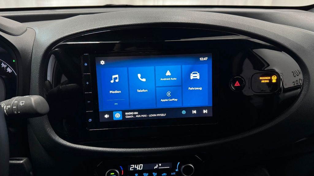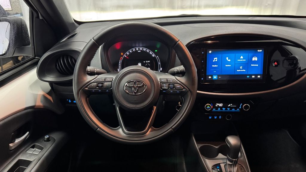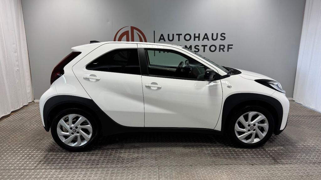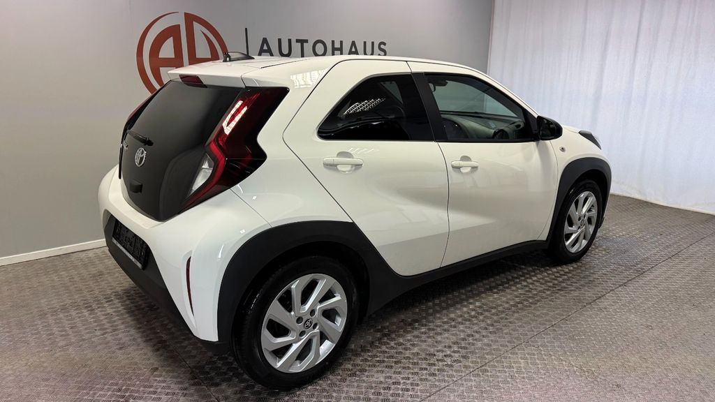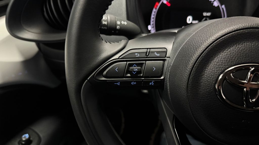 2-Farben-Lackierung Metallic, 3. Bremsleuchte, Airbag Fahrer-/Beifahrerseite, Audiobedienung am Lenkrad, Audiosystem: Multimedia Toyota Touch, Autom. Begleitfunktion der Beleuchtung (Follow me home, FMH), Außenspiegel elektr. verstell- und heizbar, Außenspiegel schwarz lackiert, Design-Paket, Fahrassistenz-System: Eco-Anzeige für verbrauchsoptimiertes Fahren, Fahrassistenz-System: Fernlichtassistent (Abblendautomatik Fahrlicht, AHB), Fahrassistenz-System: Sicherheitssystem Toyota Connect mit automatischem Notruf (eCall), Gepäckraumabdeckung / Rollo, Innenraumfilter: Staub- und Pollenfilter mit Aktivkohlefilter, Isofix-Kindersitz-System, Karosserie: 5-türig, Kindersicherung, Kopf-Airbag-System, Kopfstützen hinten, Lenkrad Applikationen in Pianoschwarz, Lenksäule (Lenkrad) höhenverstellbar, LM-Felgen, Motor 1,0 Ltr. - 53 kW KAT, Park-Assistent mit Rückfahrkamera, Reifen-Reparaturkit, Reifendruck-Kontrollsystem, Rücksitz klappbar, Schadstoffarm nach Abgasnorm Euro 6d, Schutzfolie Türgriffmulde, Seitenairbag vorn, Sitz vorn links höhenverstellbar, Sitzheizung vorn, Sonnenblenden mit Make-up-Spiegel, Stop&Go-System (TSGS), Stoßfänger Wagenfarbe, Toyota Safety Sense, Türgriffe außen Wagenfarbe, Türgriffe innen verchromt, Warnanlage für Sicherheitsgurte hinten, Warnanlage für Sicherheitsgurte vorn
