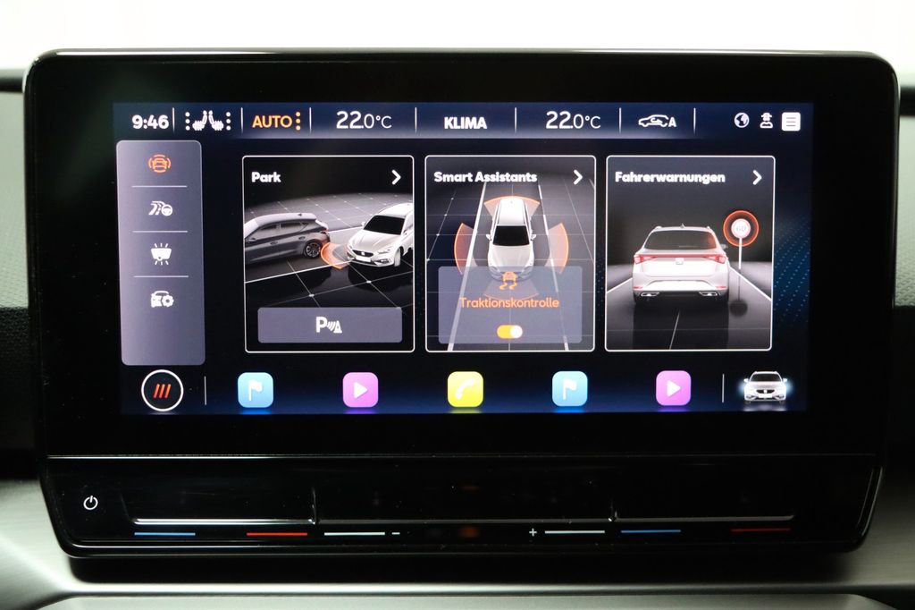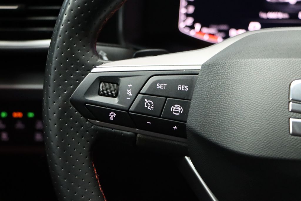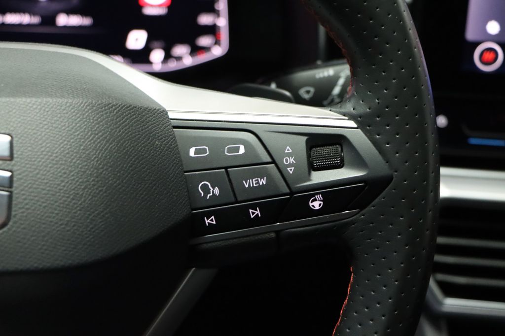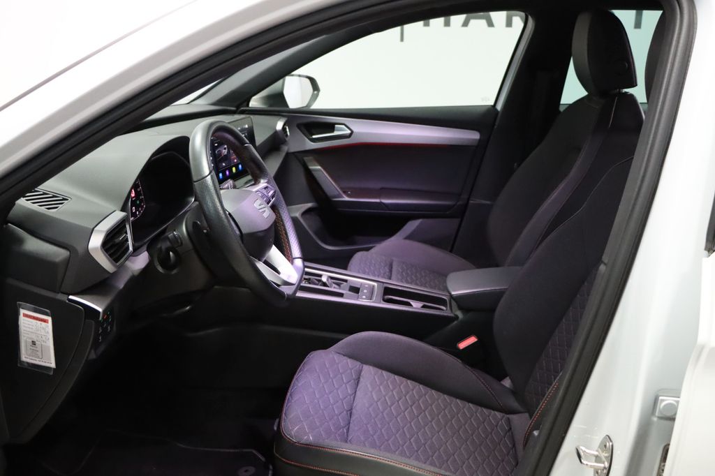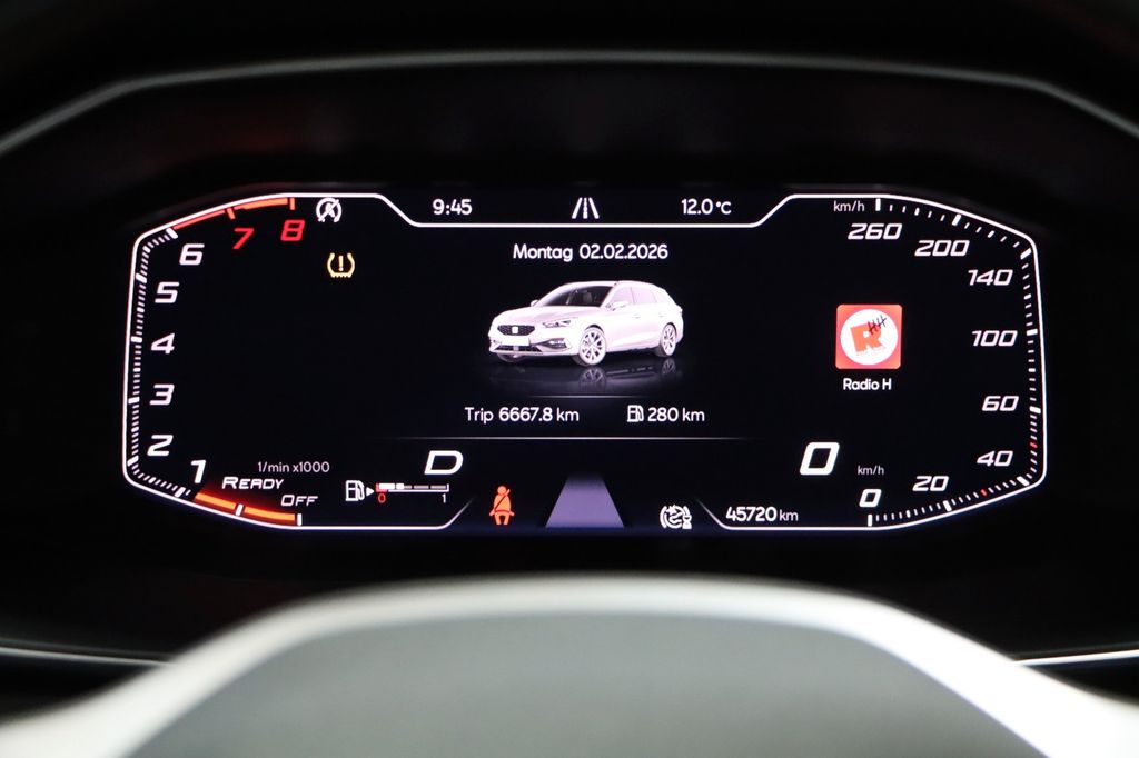 6 Lautsprecher, Ablagetasche an Vordersitzlehnen, Airbag Beifahrerseite abschaltbar, Airbag Fahrer-/Beifahrerseite, Antriebs-Schlupfregelung (ASR), Außenspiegel elektr. verstell-, heiz- und anklappbar mit Spiegelabsenkung, Außenspiegel grau, Blinkleuchten LED in Außenspiegel integriert, Bluetooth-Schnittstelle mit Freisprecheinrichtung integriert, Bordcomputer, Doppeltonhorn, Durchladeeinrichtung (Mittelarmlehne hinten), Einparkhilfe hinten, Einstiegsleisten beleuchtet, Elektron. Querdifferentialsperre (XDS), Fahrassistenz-System: Fahrprofilauswahl (SEAT Drive Profile), Fahrassistenz-System: Müdigkeitserkennung, Fahrassistenz-System: Spurhalteassistent, Fahrassistenz-System: Umfeldbeobachtungssystem (Front assist) mit City-Notbremsfunktion, Fensterheber elektrisch vorn + hinten mit Komfortschaltung, Gepäckraumabdeckung / Rollo, Geschwindigkeits-Regelanlage (Tempomat) inkl. Geschw.-Begrenzer, Handschuhfach beleuchtet, Innenraumlicht-Paket LED, Isofix-Aufnahmen für Kindersitz, Karosserie: 5-türig, Klimaanlage Climatronic 3-Zonen, Kofferraumbeleuchtung, Kombiinstrument digital (virtual cockpit), Kopf-Airbag-System, Laderaumboden variabel und herausnehmbar, Lendenwirbelstütze Sitz vorn links, verstellbar, Lendenwirbelstütze Sitz vorn rechts, verstellbar, Lenkrad (Sport/Leder) mit Multifunktion, LM-Felgen, Mild-Hybrid 110 kW (Motor 1,5 Ltr. - 110 kW eTSI ACT), Mobile Online Dienste Seat Connect, Nebelscheinwerfer LED mit Abbiegelicht, Notrufsystem, Otto-Partikelfilter (OPF), Parkbremse elektrisch mit Auto-Hold-Funktion, Radioempfang digital (DAB+), Reifen-Reparaturset, Reifenkontroll-Anzeige, Rücksitzlehne geteilt/klappbar (1/3-2/3), Rücksitzlehnen umklappbar mit Fernentriegelung im Kofferraum, Schadstoffarm nach Abgasnorm Euro 6d, Schalt-/Wählhebelgriff Leder, Seitenairbag, Seitenairbag vorn mitte (Central Airbag), Seitenscheiben hinten und Heckscheibe abgedunkelt, Sitz vorn links höhenverstellbar, Sitz vorn rechts höhenverstellbar, Sitzbezug / Polsterung: Stoff, Sport-Fahrwerk, Sport-Komfortsitze vorn, Start/Stop-Anlage, Steckdose (12V-Anschluß) im Koffer-/Laderaum, Steckdose (12V-Anschluß) vorn, Stoßfänger FR-Design, USB-Schnittstelle vorn (2-fach, Typ C), Verzurrösen Koffer-/Laderaum, Warnanlage für Sicherheitsgurt-System, Wärmeschutzverglasung