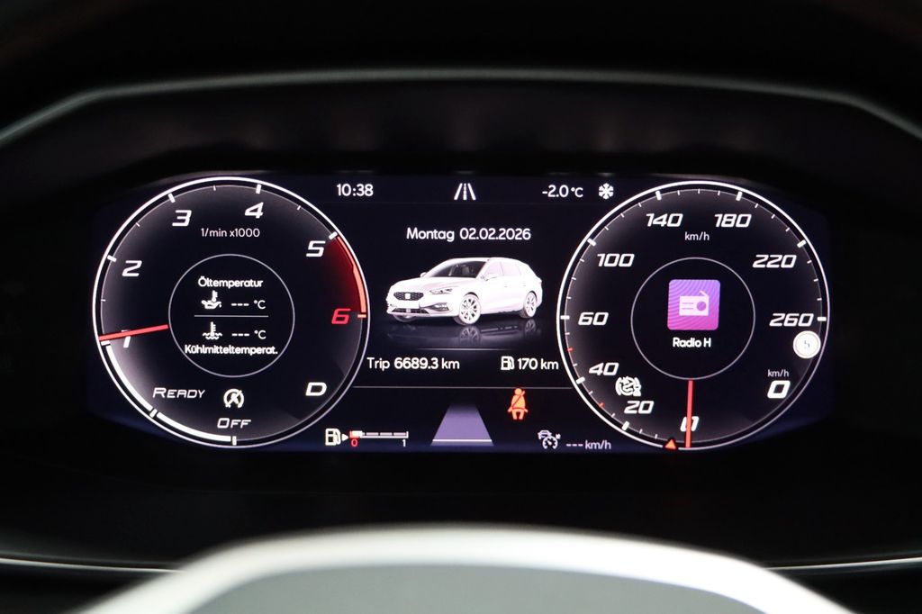 6 Lautsprecher, Ablagetasche an Vordersitzlehnen, Airbag Beifahrerseite abschaltbar, Airbag Fahrer-/Beifahrerseite, Antriebs-Schlupfregelung (ASR), Außenspiegel elektr. verstell-, heiz- und anklappbar mit Spiegelabsenkung, Außenspiegel grau, Blinkleuchten LED in Außenspiegel integriert, Bluetooth-Schnittstelle mit Freisprecheinrichtung integriert, Bordcomputer, Doppeltonhorn, Durchladeeinrichtung (Mittelarmlehne hinten), Einstiegsleisten beleuchtet, Elektron. Querdifferentialsperre (XDS), Fahrassistenz-System: Fahrprofilauswahl (SEAT Drive Profile), Fahrassistenz-System: Müdigkeitserkennung, Fahrassistenz-System: Spurhalteassistent, Fahrassistenz-System: Umfeldbeobachtungssystem (Front assist) mit City-Notbremsfunktion, Fensterheber elektrisch vorn + hinten mit Komfortschaltung, Gepäckraumabdeckung / Rollo, Handschuhfach beleuchtet, Innenraumlicht-Paket LED, Isofix-Aufnahmen für Kindersitz, Karosserie: 5-türig, Klimaanlage Climatronic 3-Zonen, Kofferraumbeleuchtung, Kombiinstrument digital (virtual cockpit), Kopf-Airbag-System, Laderaumboden variabel und herausnehmbar, Lendenwirbelstütze Sitz vorn links, verstellbar, Lendenwirbelstütze Sitz vorn rechts, verstellbar, Lenkrad (Sport/Leder) mit Multifunktion, LM-Felgen, Mobile Online Dienste Seat Connect, Motor 2,0 Ltr. - 110 kW TDI, Nebelscheinwerfer LED mit Abbiegelicht, Notrufsystem, Parkbremse elektrisch mit Auto-Hold-Funktion, Radioempfang digital (DAB+), Reifen-Reparaturset, Reifenkontroll-Anzeige, Rücksitzlehne geteilt/klappbar (1/3-2/3), Rücksitzlehnen umklappbar mit Fernentriegelung im Kofferraum, Schadstoffarm nach Abgasnorm Euro 6d, Schalt-/Wählhebelgriff Leder, Seitenairbag, Seitenairbag vorn mitte (Central Airbag), Seitenscheiben hinten und Heckscheibe abgedunkelt, Sitz vorn links höhenverstellbar, Sitz vorn rechts höhenverstellbar, Sitzbezug / Polsterung: Stoff, Sport-Fahrwerk, Sport-Komfortsitze vorn, Start/Stop-Anlage, Steckdose (12V-Anschluß) im Koffer-/Laderaum, Steckdose (12V-Anschluß) vorn, Stoßfänger FR-Design, USB-Schnittstelle vorn (2-fach, Typ C), Verzurrösen Koffer-/Laderaum, Warnanlage für Sicherheitsgurt-System, Wärmeschutzverglasung