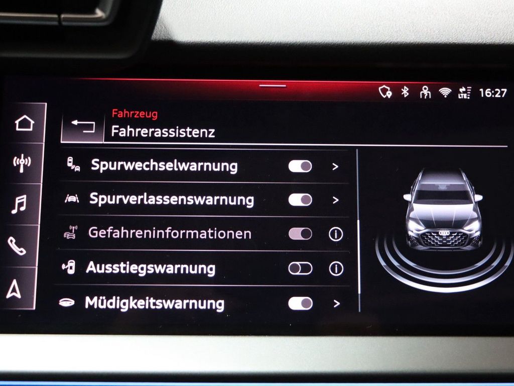 Airbag Beifahrerseite abschaltbar, Airbag Fahrer-/Beifahrerseite, Audi connect (Notruf- und Assistance-System), Außenspiegel Wagenfarbe, Bluetooth-Freisprecheinrichtung mit Audi Phone Box light, Dachkantenspoiler S-line, Einparkhilfe vorn und hinten, akustisch und optisch mit selektiver Anzeige (APS Plus), Fahrassistenz-System: Ausweich-Assistent, Fahrassistenz-System: Bremsassistent (Audi pre sense front), Fahrassistenz-System: Müdigkeitserkennung (Pausenempfehlung), Fahrassistenz-System: Notfall-Assistent mit automatischem Notruf, Fahrassistenz-System: Spurverlassenswarnung inkl. Notfall-Assistent, Fahrassistenz-System: Verkehrszeichenerkennung, Fußmatten Velours, Geschwindigkeits-Begrenzeranlage, Heckscheibenwischer, Isofix-Aufnahmen für Kindersitz, Karosserie: 5-türig, Kindersicherung elektr. betätigt, Klimaautomatik, Kombiinstrument digital (virtual cockpit), Kopf-Airbag-System (Sideguard), Kopfstützen hinten (3-fach), Lenkrad (Leder - 3-Speichen) mit Multifunktion plus und Schaltfunktion, Mild-Hybrid 110 kW (Motor 1,5 Ltr. - 110 kW 16V TFSI ACT), Modellpflege, Multi-Media-Interface MMI Basic Plus / MMI Radio Plus, Multifunktionskamera, Nichtraucher-Paket, Parkbremse elektro-mechanisch, Radioempfang digital (DAB), Reifen-Reparaturkit, Reifendruck-Kontrollsystem, Schadstoffarm nach Abgasnorm Euro 6e, Seitenairbag vorn, Seitenairbag vorn mitte (Interaktionsairbag), Sitzbelegungserkennung für Sicherheitsgurte, Sitze vorn manuell einstellbar, Sport-Fahrwerk, Start-Stop-Knopf, Start/Stop-Anlage, Stoßfänger Sport-Design (S-line), USB-Ladeanschlüsse (2-fach, Typ C) für Fondpassagiere, Vorbereitung Lichtassistent für weitere Funktionen (feature on demand, FOD), Wärmeschutzverglasung grün getönt
