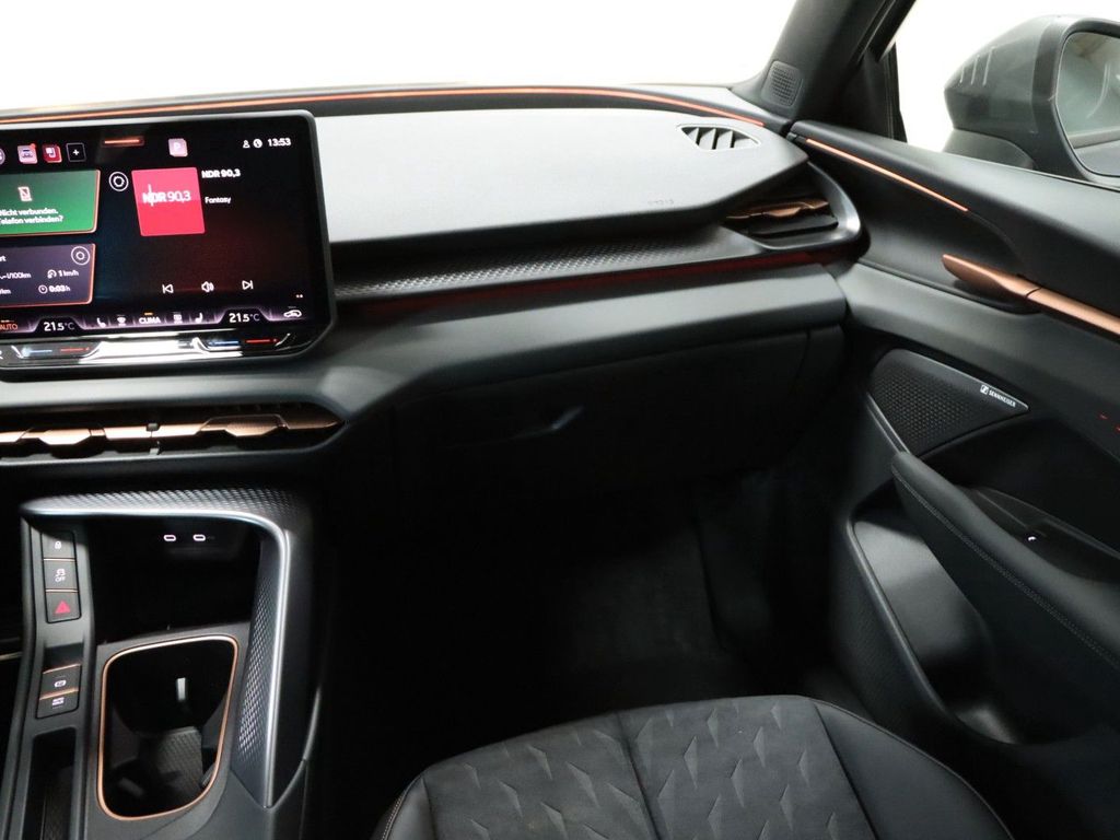 9 Lautsprecher, Airbag Beifahrerseite abschaltbar, Airbag Fahrer-/Beifahrerseite, Connectivity-Box, Dachhimmel schwarz, Dachreling schwarz, Design-Paket Dynamic, Doppeltonhorn, Edge-Paket, Einparkhilfe vorn und hinten, Fahrassistenz-System: Abbiegebremsfunktion und Ausweichunterstützung, Fahrassistenz-System: Adaptive Fahrwerksregelung (DCC), Fahrassistenz-System: Fahrprofilauswahl (CUPRA Drive Profile), Fahrassistenz-System: Kreuzungs-Assistent, Fensterheber elektrisch vorn + hinten mit Komfortschaltung, Full Link (MirrorLink, Apple CarPlay und Android Auto), Fußraumbeleuchtung LED, Gepäck-/Laderaumboden doppelt, Geschwindigkeitsbegrenzer mit vorausschauender Geschw.-Regelung, Heckleuchten LED mit dynamischem Blinklicht, Innenspiegel mit Abblendautomatik, Isofix-Aufnahmen für Kindersitz an Beifahrersitz und Rücksitz (inkl. i-Size-Kindersitze), Karosserie: 5-türig, Kombiinstrument digital (10,25 Zoll), Kopf-Airbag-System, Kopfstützen hinten (3-fach), Lendenwirbelstützen vorn, elektr. verstellbar, Leseleuchten hinten LED, Leseleuchten vorn LED, Lichtassistent (Coming Home, Leaving Home), Media-System Plus, Mobile Online Dienste Cupra Connect, Motor 2,0 Ltr. - 195 kW 16V TSI, Notrufsystem, Parkbremse elektrisch mit Auto-Hold-Funktion, Pedale Aluminium-Design, Radioempfang digital (DAB+), Radstand Standard, Reifen-Reparaturset, Rückfahrkamera, Rücksitzlehne geteilt/klappbar mit Mittelarmlehne und Durchladeeinrichtung, Schadstoffarm nach Abgasnorm Euro 6e, Seitenairbag, Seitenairbag vorn mitte (Central Airbag), Sitz vorn links höhenverstellbar, Sitz vorn rechts höhenverstellbar, Sonderlackierung Fiord-Blau, Sonnenblende links mit Spiegel (beleuchtet), Sonnenblende rechts mit Spiegel (beleuchtet), Sport-Schalensitze vorn mit integrierten Kopfstützen, Sprachsteuerungs-System, Steckdose (12V-Anschluß) vorn, USB-Ladeanschlüsse (2-fach, Typ C) für 2.Sitzreihe, USB-Schnittstelle vorn (2-fach, Typ C), Warnanlage für Sicherheitsgurt-System, Wärmeschutzverglasung