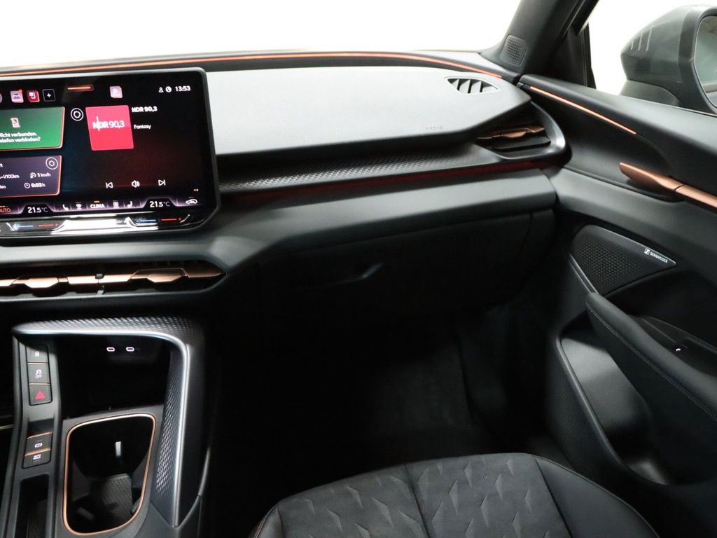 9 Lautsprecher, Airbag Beifahrerseite abschaltbar, Airbag Fahrer-/Beifahrerseite, Connectivity-Box, Dachhimmel schwarz, Dachreling schwarz, Design-Paket Dynamic, Doppeltonhorn, Edge-Paket, Einparkhilfe vorn und hinten, Fahrassistenz-System: Abbiegebremsfunktion und Ausweichunterstützung, Fahrassistenz-System: Adaptive Fahrwerksregelung (DCC), Fahrassistenz-System: Fahrprofilauswahl (CUPRA Drive Profile), Fahrassistenz-System: Kreuzungs-Assistent, Fensterheber elektrisch vorn + hinten mit Komfortschaltung, Full Link (MirrorLink, Apple CarPlay und Android Auto), Fußraumbeleuchtung LED, Gepäck-/Laderaumboden doppelt, Geschwindigkeitsbegrenzer mit vorausschauender Geschw.-Regelung, Heckleuchten LED mit dynamischem Blinklicht, Innenspiegel mit Abblendautomatik, Isofix-Aufnahmen für Kindersitz an Beifahrersitz und Rücksitz (inkl. i-Size-Kindersitze), Karosserie: 5-türig, Kombiinstrument digital (10,25 Zoll), Kopf-Airbag-System, Kopfstützen hinten (3-fach), Lendenwirbelstützen vorn, elektr. verstellbar, Leseleuchten hinten LED, Leseleuchten vorn LED, Lichtassistent (Coming Home, Leaving Home), Media-System Plus, Mobile Online Dienste Cupra Connect, Motor 2,0 Ltr. - 195 kW 16V TSI, Notrufsystem, Parkbremse elektrisch mit Auto-Hold-Funktion, Pedale Aluminium-Design, Radioempfang digital (DAB+), Radstand Standard, Reifen-Reparaturset, Rückfahrkamera, Rücksitzlehne geteilt/klappbar mit Mittelarmlehne und Durchladeeinrichtung, Schadstoffarm nach Abgasnorm Euro 6e, Seitenairbag, Seitenairbag vorn mitte (Central Airbag), Sitz vorn links höhenverstellbar, Sitz vorn rechts höhenverstellbar, Sonderlackierung Fiord-Blau, Sonnenblende links mit Spiegel (beleuchtet), Sonnenblende rechts mit Spiegel (beleuchtet), Sport-Schalensitze vorn mit integrierten Kopfstützen, Sprachsteuerungs-System, Steckdose (12V-Anschluß) vorn, USB-Ladeanschlüsse (2-fach, Typ C) für 2.Sitzreihe, USB-Schnittstelle vorn (2-fach, Typ C), Warnanlage für Sicherheitsgurt-System, Wärmeschutzverglasung