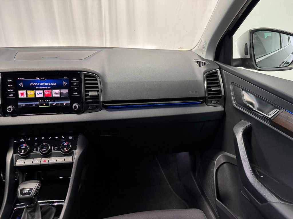 8 Lautsprecher, Ablagetasche an Vordersitzlehnen, Airbag Fahrer-/Beifahrerseite, Antriebs-Schlupfregelung (ASR), Außenspiegel elektr. verstell-, heiz- und anklappbar, mit Abblendautomatik, Außenspiegel Silber lackiert, Beleuchtungs-Paket LED, Bremsassistent, Dachhimmel grau, Dachreling silber, Edelstahlpedale Sportdesign, Einparkhilfe vorn und hinten, Einstiegsleisten (Aluminium-Design), Elektron. Querdifferentialsperre (XDS), Fahrassistenz-System: Auffahrwarnsystem mit City-Notbremsfunktion (Frontradar-Assistent), Fahrassistenz-System: Berganfahr-/Abfahr-Assistent (Offroad Assistent), Fahrassistenz-System: Berganfahr-Assistent (Hill-Holder), Fahrassistenz-System: Einschaltautomatik für Fahrlicht (Fahrlichtassistent), Fahrassistenz-System: Fahrprofilauswahl, Fahrassistenz-System: Fernlichtassistent, Fahrassistenz-System: Multikollisionsbremse (Multi Collision Brake), Fensterheber elektrisch vorn + hinten, Funkschlüssel (3) klappbar, Gepäckraumabdeckung / Rollo, Gepäcksicherung / Gepäckbefestigung (Cargo-Elemente), Handschuhfach beleuchtet, Heckleuchten LED (Kristallglas-Optik), Infotainment-Paket Bolero, Innenausstattung: Dekoreinlagen Graphit Grau, Innenraumfilter: Staub- und Pollenfilter, Innenspiegel mit Abblendautomatik, Isofix-Aufnahmen für Kindersitz an Rücksitz, Karosserie: 5-türig, Kennzeichenbeleuchtung LED, Klimaanlage Climatronic 2-Zonen, Knieairbag Fahrerseite, Kopf-Airbag-System, Lehnenentriegelung der Rücksitzlehne im Kofferraum, Lenksäule (Lenkrad) höhenverstellbar, Lenksäule (Lenkrad) längsverstellbar, Leseleuchte, LM-Felgen, Mittelarmlehne hinten, Multifunktionsanzeige, Netzprogramm im Kofferraum, Notrufsystem, Radioempfang digital (DAB+), Radstand 2630 mm, Reifen-Reparaturkit, Reifendruck-Kontrollsystem, Rücksitzlehne geteilt/klappbar, Schadstoffarm nach Abgasnorm Euro 6d-TEMP, Schalt-/Wählhebelgriff Leder, Scheibenwaschdüsen heizbar, Scheibenwischer Aero (Flachblattscheibenwischer), Seitenairbag vorn, Seitenscheiben hinten und Heckscheibe abgedunkelt (SunSet), Servolenkung elektronisch (Servotronic), Sitz vorn links höhenverstellbar, Sitz vorn rechts höhenverstellbar, Sitzbezug / Polsterung: Stoff Ambition Grau, Sonnenblende links mit Spiegel, Sonnenblende rechts mit Spiegel, Start/Stop-Anlage, Steckdose (12V-Anschluß) im Koffer-/Laderaum, Steckdose (12V-Anschluß) in Mittelkonsole vorn, Stoßfänger Wagenfarbe, Triebwerkunterschutz, Türgriffe außen Wagenfarbe, Türgriffe innen verchromt, Verglasung getönt, Verzurrösen Koffer-/Laderaum, Sitzheizung vorn, Digital Cockpit Pro, Innenspiegel automatisch abblendend, Rückfahrkamera Rear View, Regensensor, Seitenscheiben hinten und Heckscheibe abgedunkelt